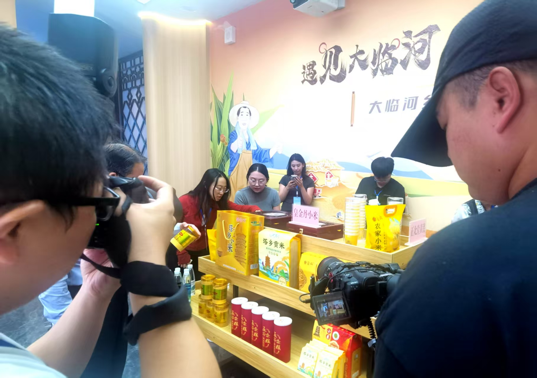 讲解员畅宇新为采访团讲解魅力大临河小程序