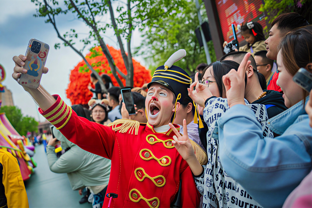 除了精彩纷呈的小丑演出外,全新升级的“欢乐小丑奇遇巡游”也将成为乐园的“气氛担当”。中西方小丑全员盛装亮相,把西式经典滑稽互动玩法和东方趣味幽默氛围完美融合。沿途花式招手互动、趣味搞怪定格合影,边走边玩、边看边笑,一路解锁沿途狂欢氛围感,随手一拍都是假日氛围感大片。