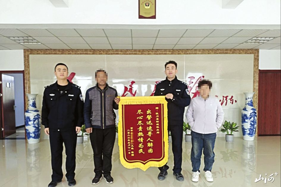 焦先生及家人为陵川附城派出所民警送上锦旗表示感谢。