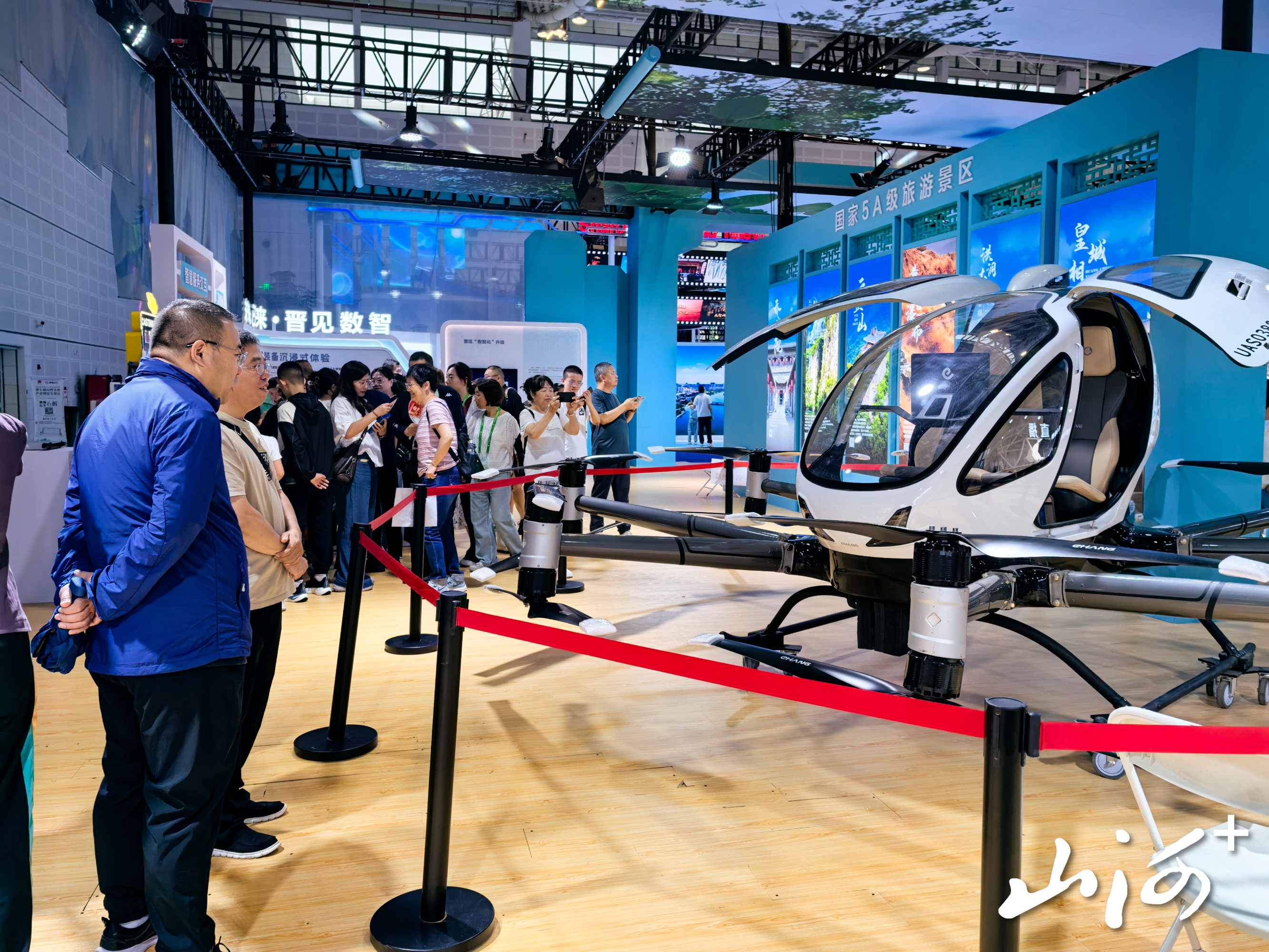快看!这里居然有一架样子有点奇怪的小飞机?在2025山西文博会省文旅厅展区内,许多观众被一架飞机吸引。原来,这是一架可承载2名游客的无人驾驶飞机。“低空经济”作为文旅新业态之一,此次以具体直观的展示方式呈现在观众面前。