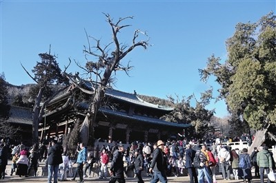 春节假期,晋祠博物馆内游人如织。牛利敏 摄