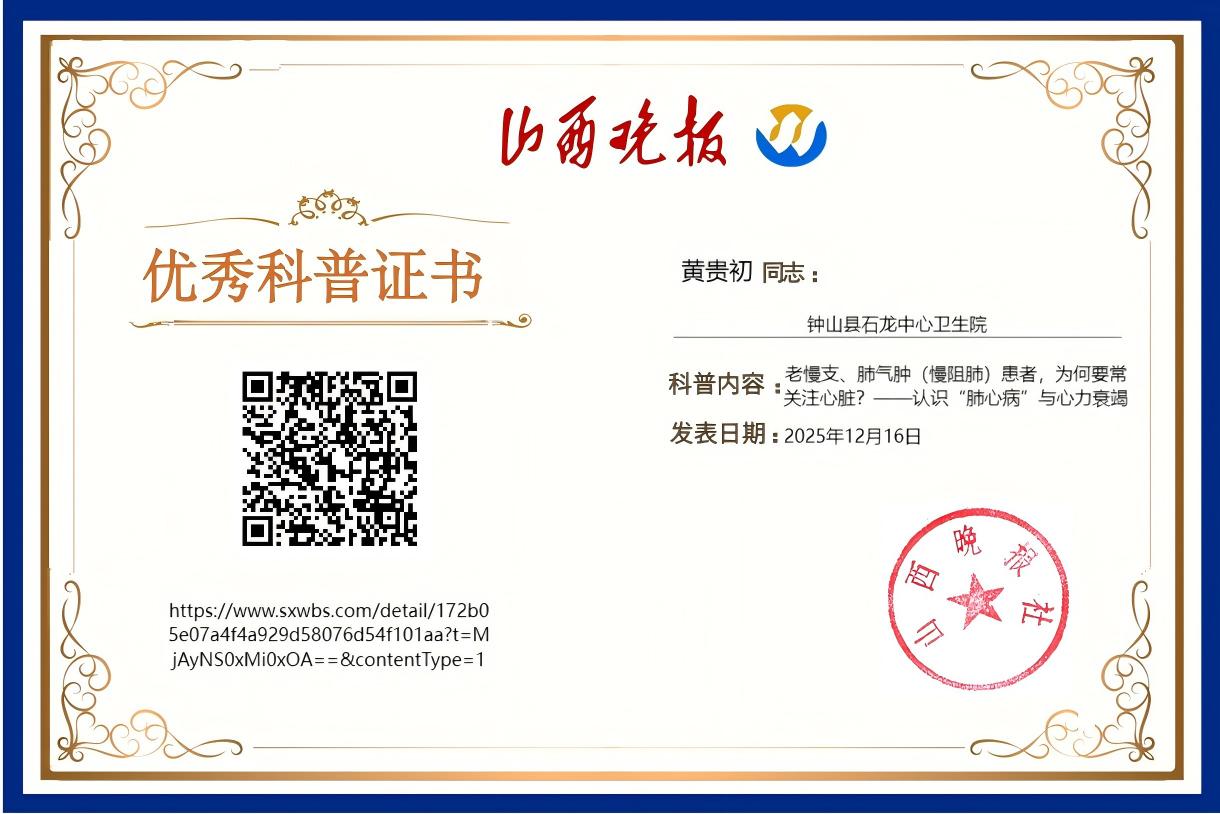 慢阻肺与心脏关系密切,肺不好则心脏难安。对于老慢支、肺气肿患者,关注心脏是疾病管理的核心。愿每位慢阻肺患者呼吸顺畅、心脏安康!