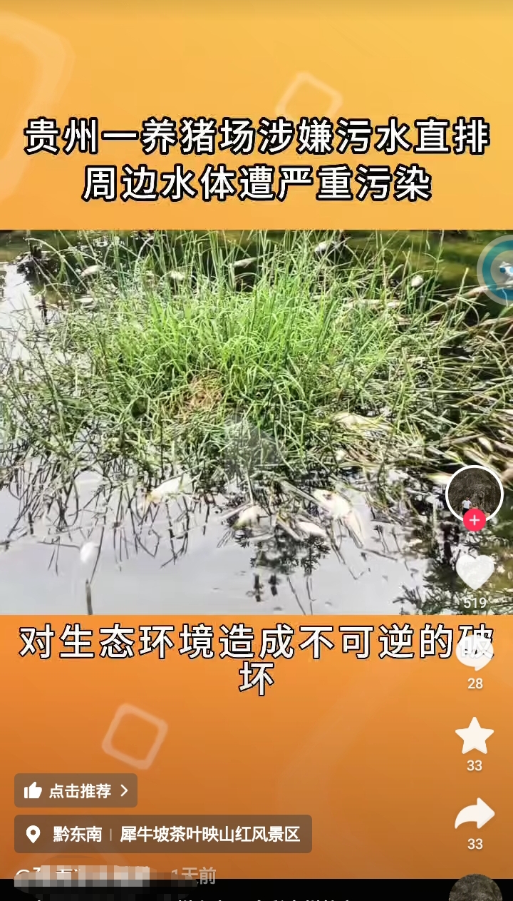 4月17日,山西晚报·山河+记者联系了黔东南州生态环境局黎平分局,一位工作人员称,对网友反映黎平县坝寨乡高西村犀牛坡养猪场排放粪污影响环境问题,黎平县立即组织生态环境、农业农村、水务等部门迅速赶赴现场开展排查处置,具体情况以情况通报为准。
