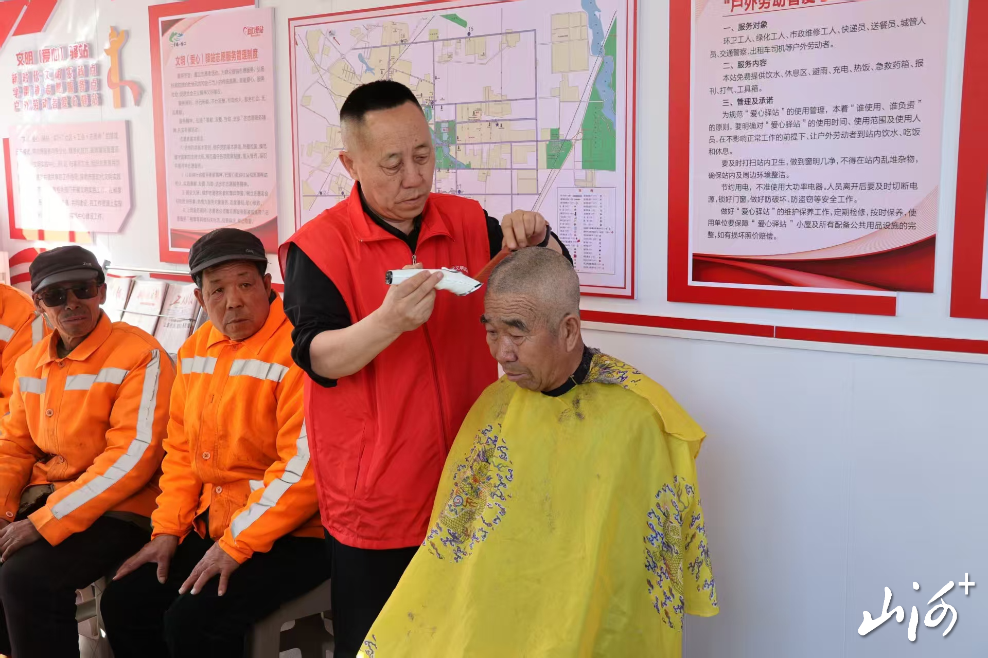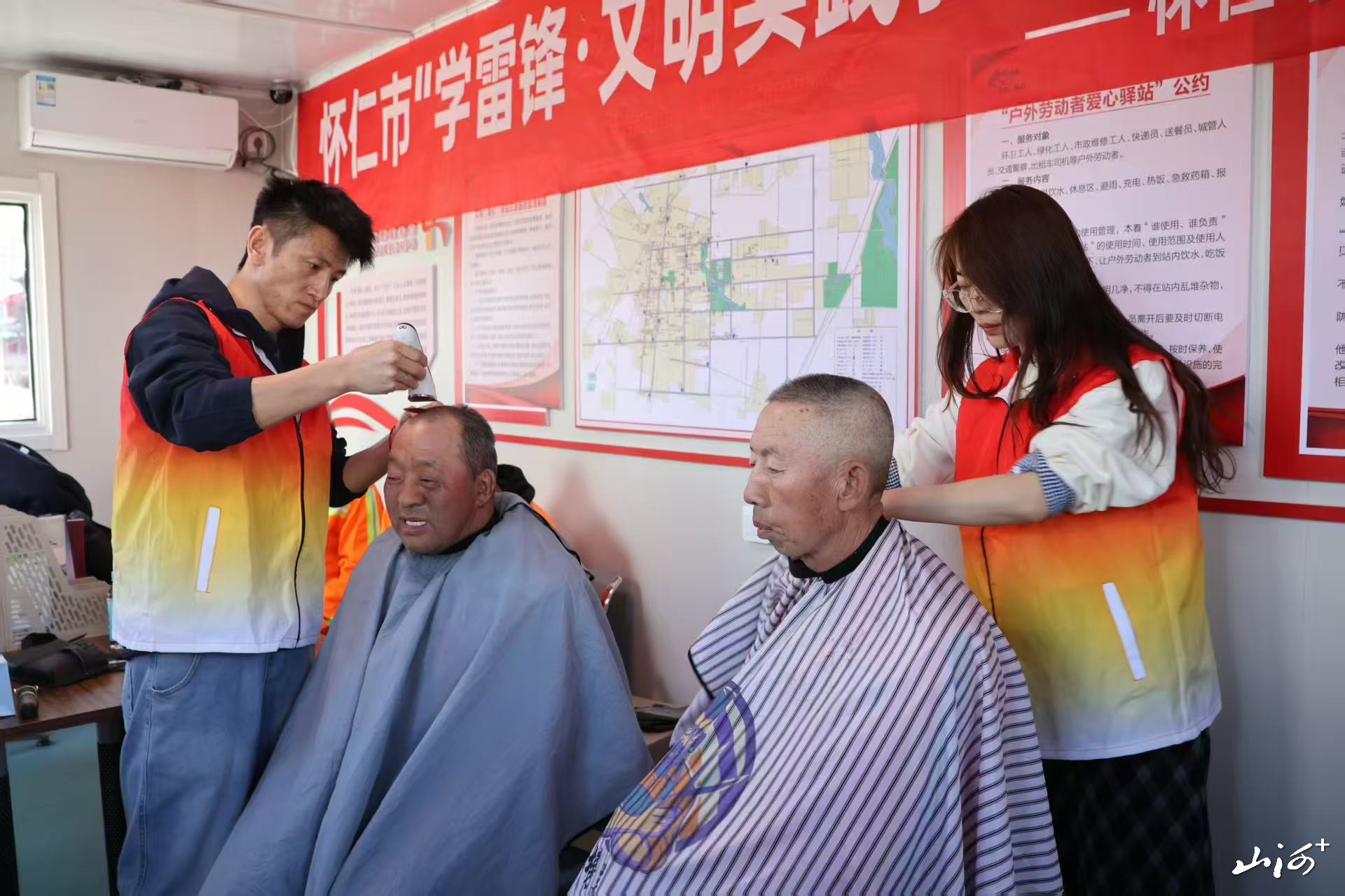 山西晚报·山河+讯 3月5日,怀仁市新时代文明实践中心依托爱心驿站,开展“ 学雷锋·文明实践我行动”主题活动,为一线环卫工人提供免费理发服务,以暖心实事传递文明温度。