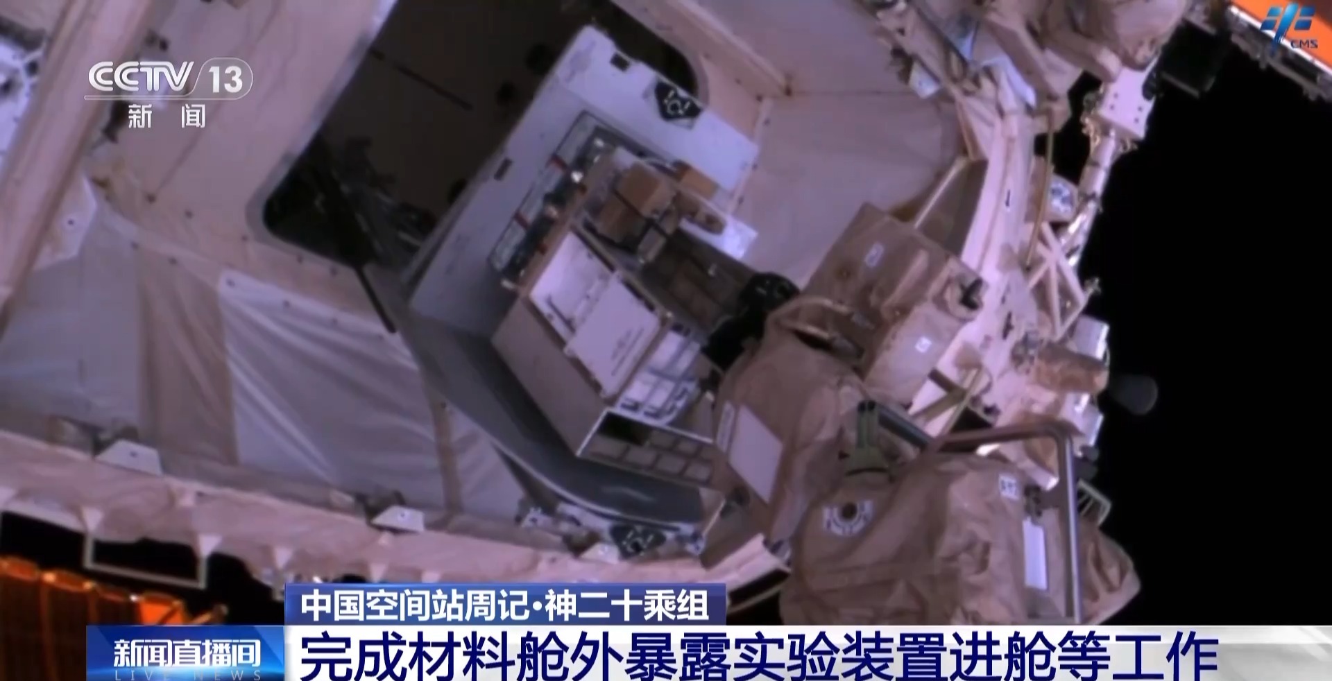 上周,乘组完成了材料舱外暴露实验装置进舱、第三批实验样本回收与存储等工作。