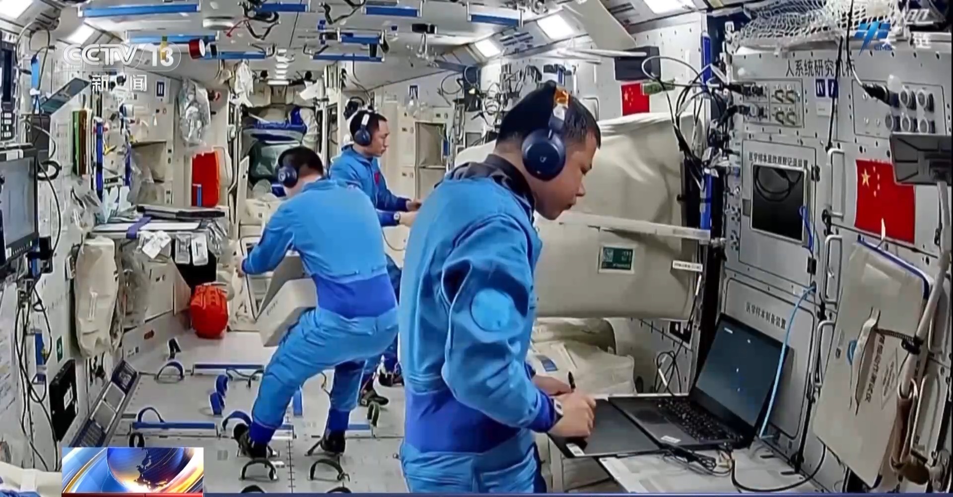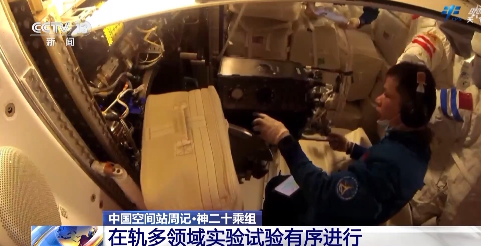 在站务管理方面,乘组完成了问天气闸舱、梦天实验舱内货包及舱外服转移整理,药品清点及物资管理相关工作。