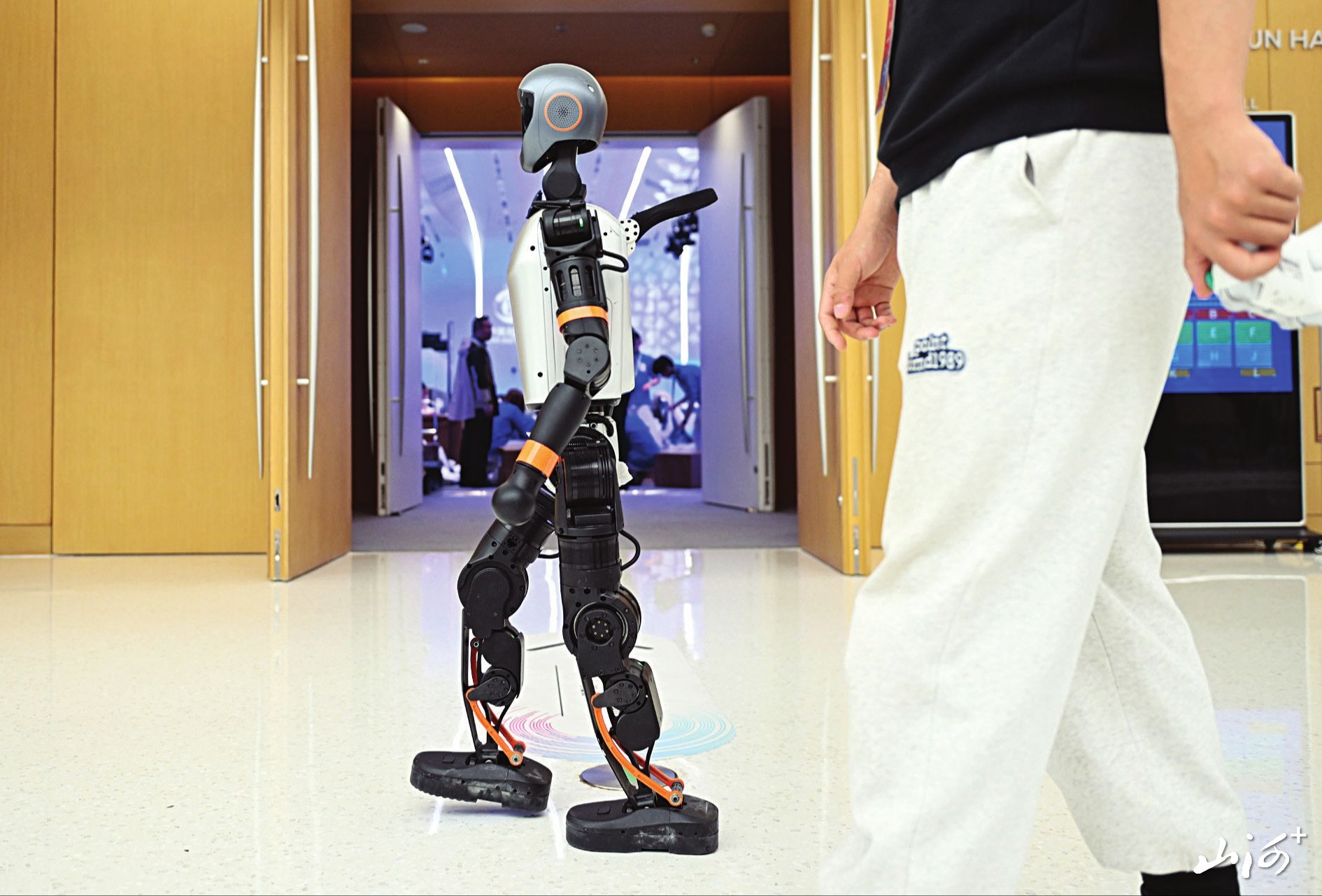 3月26日,一款加速T1机器人行走在中关村国际创新中心内。 新华社发