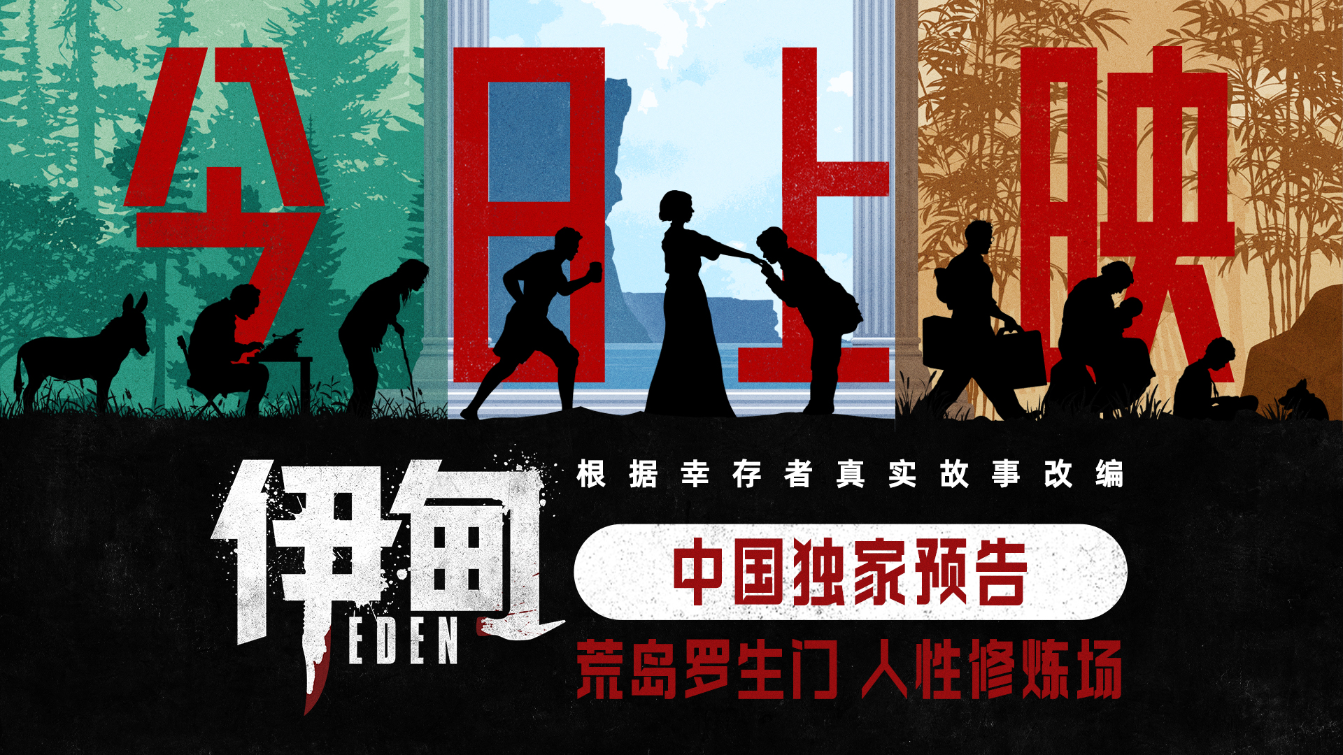 由奥斯卡金像奖导演朗·霍华德执导,裘德·洛、安娜·德·阿玛斯、凡妮莎·柯比、丹尼尔·布鲁赫及西德尼·斯维尼主演的高分惊悚狠片《伊甸》22日上映,并发布中国独家预告和中国独家海报,将荒岛求生的血腥人性赤裸地展现在观众面前。影片在前几日的超前观影场收获不俗好评,获赞“生理心理双重极致惊悚”。电影根据幸存者真实故事改编,豆瓣评分7.5分,是近五年院线惊悚类型最高分。