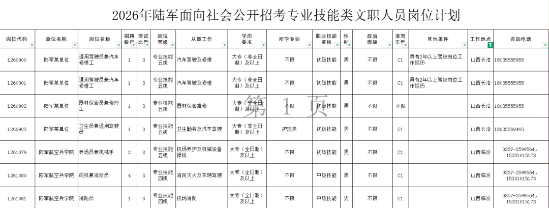 附件:2026年陆军面向社会公开招考专业技能类文职人员岗位计划