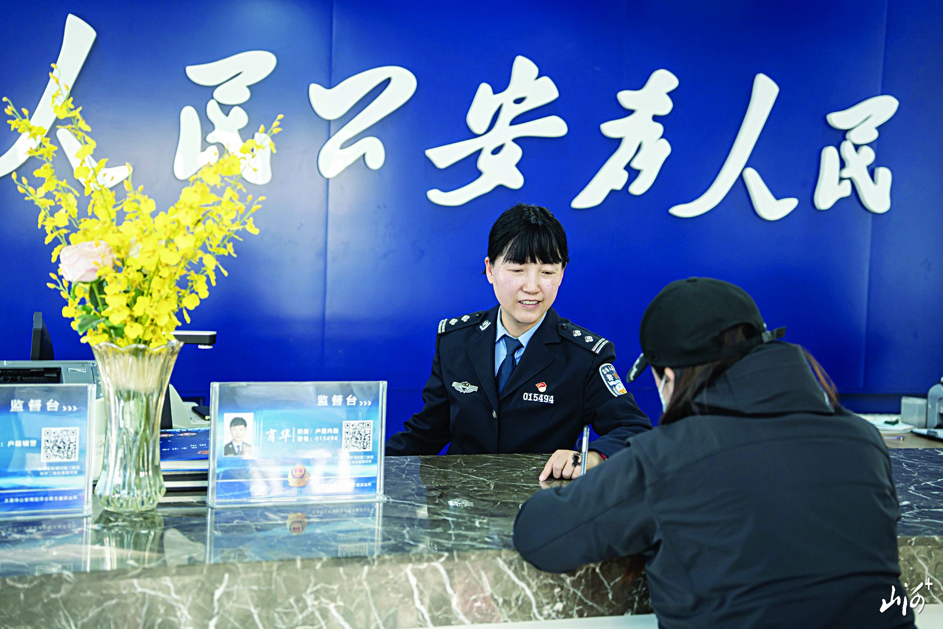 综合便民服务大厅民警热情为群众办户办证。