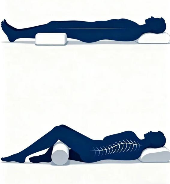 不少人有过这样的经历:白天工作未觉明显不适,夜间睡觉时腰痛却突然袭来,或清晨醒来时腰部僵硬疼痛。这并非“休息不足”那么简单,很可能是“腰骶角增大、骨盆前倾”导致腰椎悬空,即便入睡,腰椎仍处于“工作状态”。 不妨先做两个小测试:自然站立时,手摸后腰正中,若有明显向前凹陷;自然平躺时,腰部与床面间存在较大缝隙——若两项均符合,说明你的腰椎在睡眠中大概率处于悬空状态。长期如此,腰椎得不到放松,疼痛便会反复出现。 调整睡姿的核心,是让悬空的腰部“贴紧”床面。推荐两种实用姿势:一是平躺时在膝盖下方垫一个枕头,借助枕头支撑腿部,缩小腰部与床面的缝隙;若此方法效果有限,可尝试第二种——侧卧位,将身体侧转90度,此时腰椎受力均匀,能充分放松。只需简单调整,就能让腰椎在夜间真正休息,缓解“睡眠痛”。