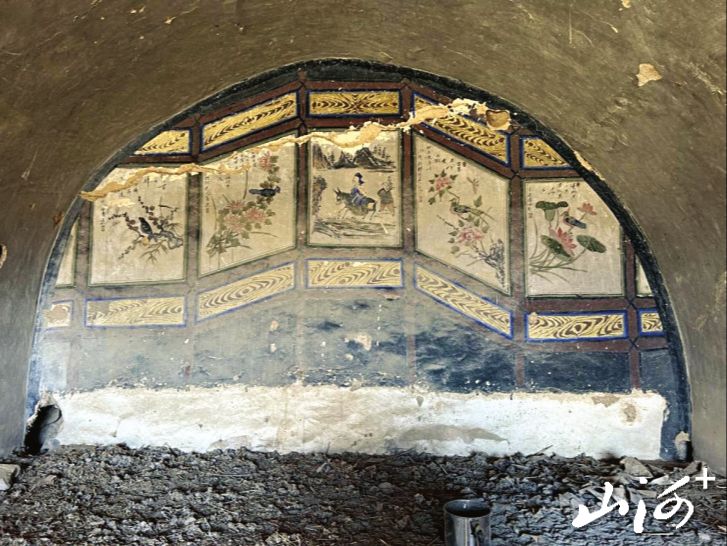 “四普”队员走访村民时了解到,窑口原设有红门,现门已不复存在,窑口两侧仍保留有部分土坯砖砌墙体;窑内南、北窑壁下设青砖砌墙裙;窑内东侧设有青砖砌神台,神台上无塑像;东、南、北三面均绘有壁画,除壁画外,还有题字、题诗等,部分墨书较为清晰,字体苍劲有力,应为明清时期人的题写。