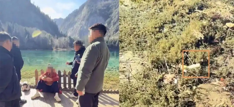 网传视频显示,事件发生在九寨沟核心景点五花海。一名男子在食用完玉米后,随手将玉米棒丢弃在栈道旁。周围游客立即指出其行为不当,现场工作人员也迅速上前制止。面对劝阻,该男子情绪激动,一边扇自己耳光,一边高声辩解:“如果它有污染,为什么卖有污染的东西给我吃?”