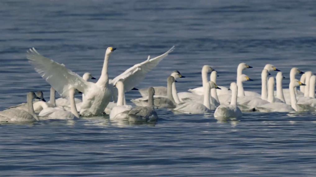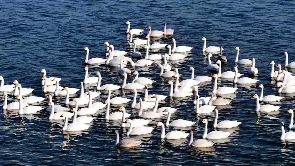 冬日,在山西长治漳泽湖国家城市湿地公园,百余只白天鹅或悠然游弋,或振翅飞翔,为静谧湖面增添不少灵动气息。