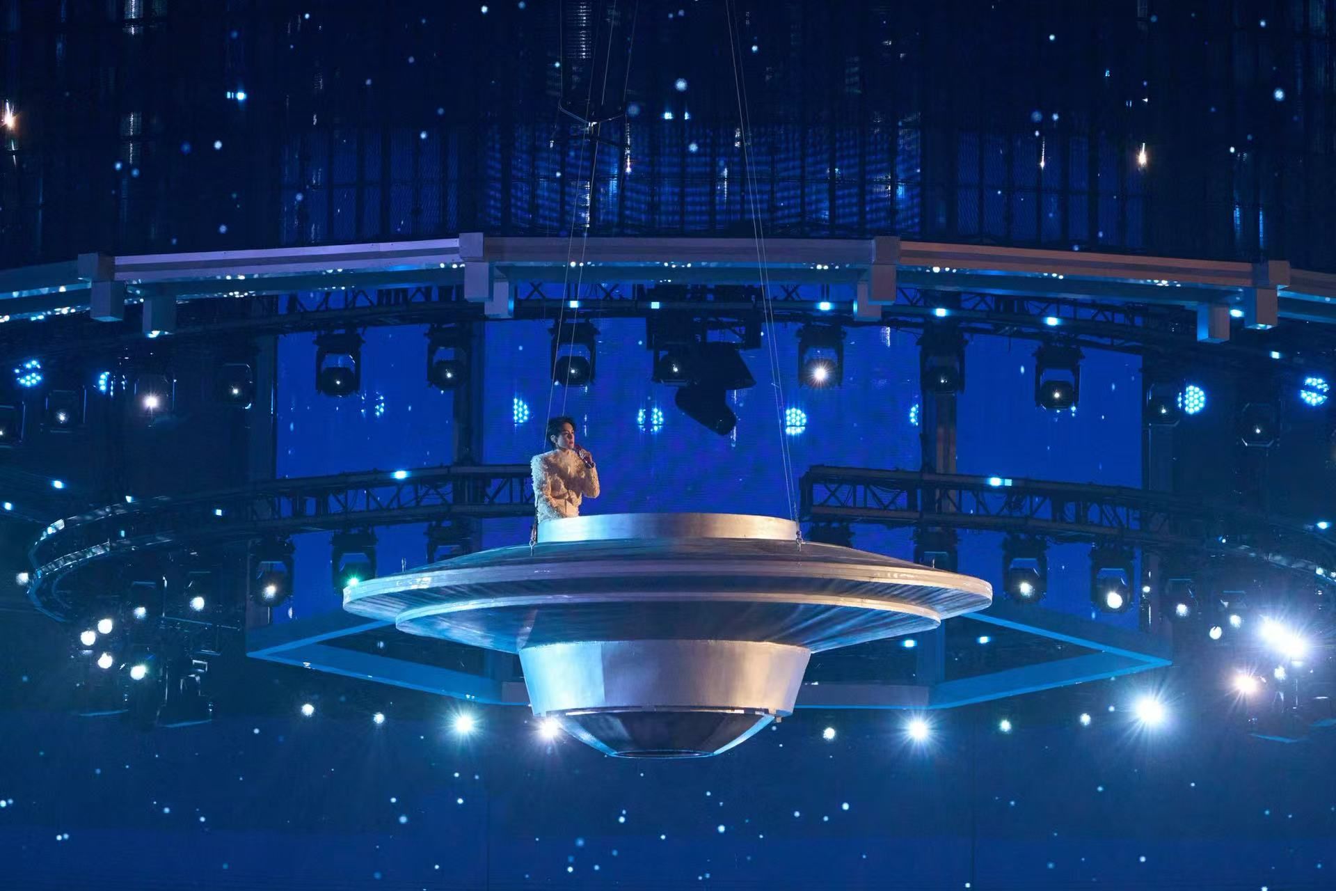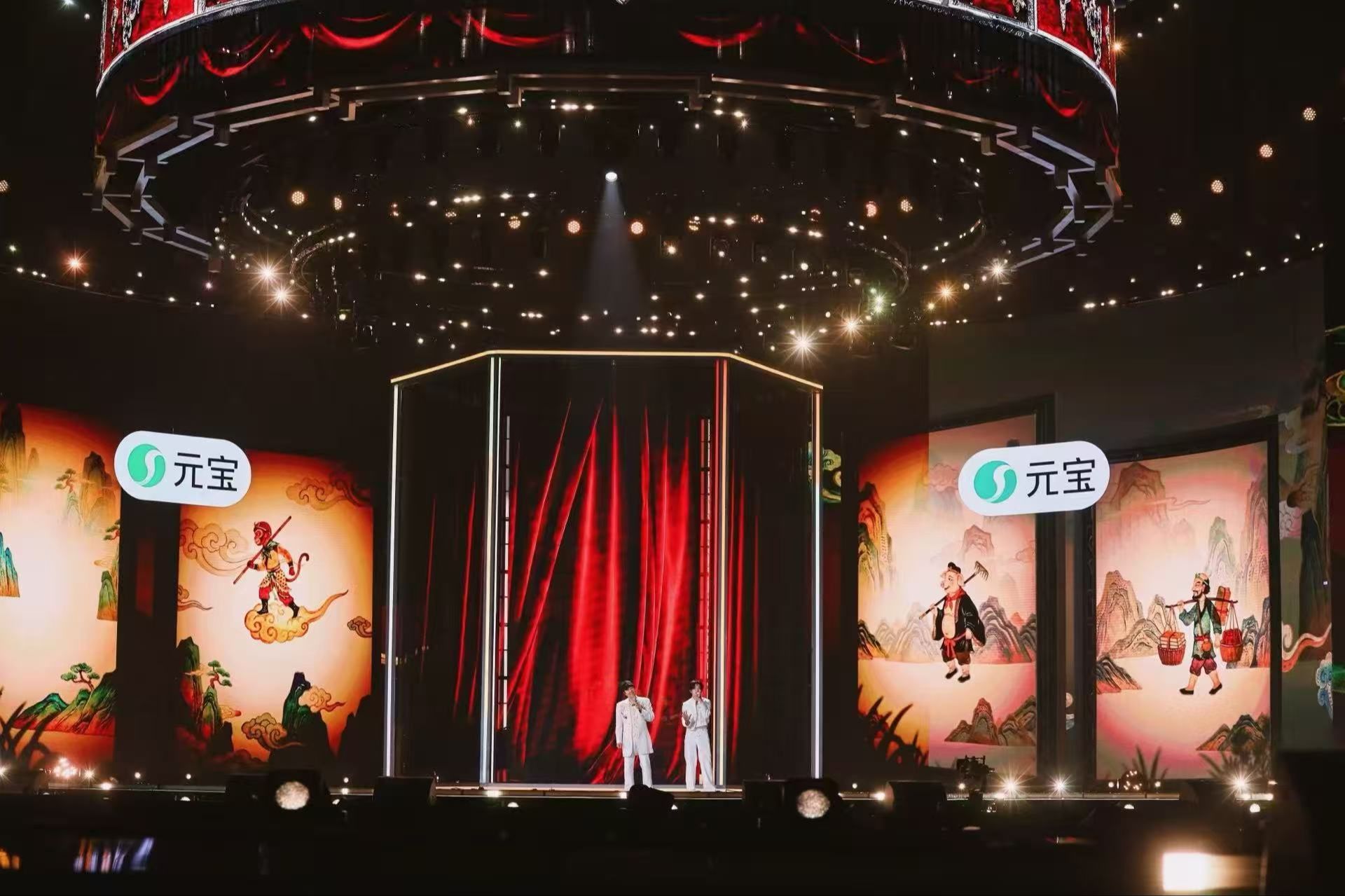科技让舞台想象力无限延伸。周深带来的XR秀《梦见你》,化身提灯寻梦人的他带观众步入AR与XR技术构建的“时间的河”;檀健次的《Proof》以硬核科技力量呈现震撼视觉;颜安、黄誉博化身主理人带来《吸引力法则》,在4M升降屏与视觉弹幕之下,为你现场“烹饪”金币、offer等具象化好运,打造魔幻现实主义的欢乐厨房。徐浩伦、谭湘文用AI新视角打开脱口秀,值得期待。
