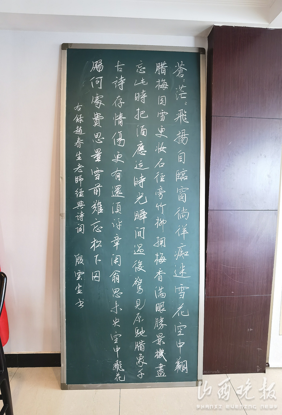 通晓书法者,易于领会诗词之要义,精于诗词者,亦易会通书之法理。“赵春生诗词首展”,展示了我省诗词、书法爱好者赵春生先生近年创作的诗词和书法作品。据了解,赵春生长期学习、背诵、研究古典诗词,近年来尝试创作大量古体近体诗词,其书法造诣也在一众爱好者中独具风格。本次展览展出其诗词代表作品20件,这些诗词歌赋分别用硬笔字、粉笔字、毛笔字三种书法进行呈现,既展现了诗词意境之美,也让公众在欣赏之余感受到了赵春生笔锋之下的魅力,得到双重的艺术熏陶。