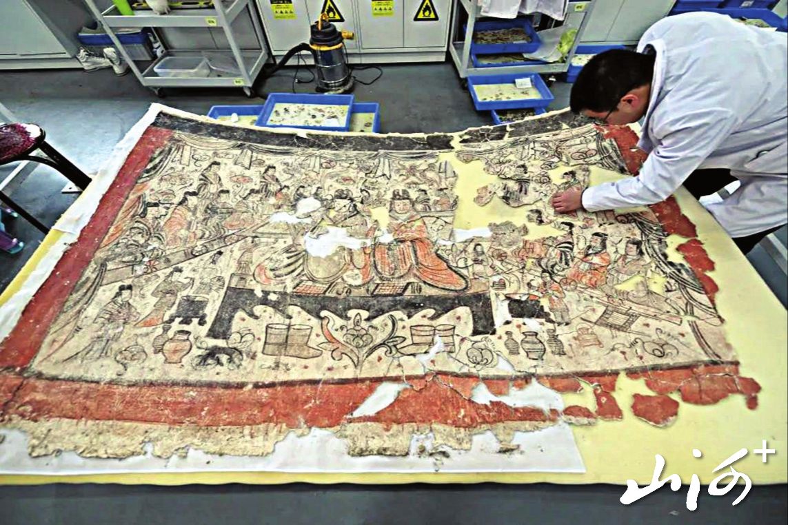 云冈研究院工作人员在进行壁画修复