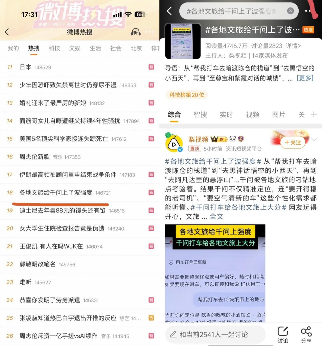 事情的起因特别简单:各地文旅部门开始用千问AI打车“搞事情”,话题直接冲上了微博热搜。