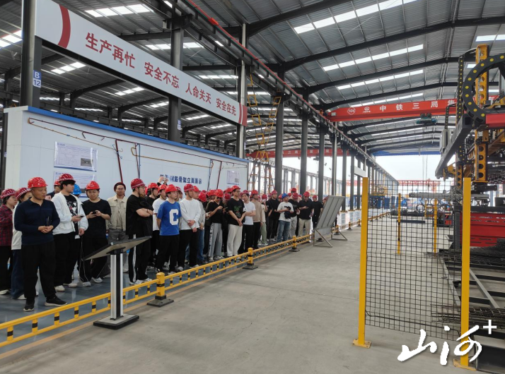 4月25日,石家庄铁道大学学生走进中铁三局石雄铁路站前1标蠡县制梁场施工现场,沉浸式观摩高铁箱梁智能化预制全流程,零距离感受中国基建的硬核实力。