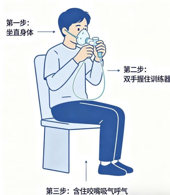 关键要点:无论是吸气还是呼气,动作都要缓慢,快速猛烈的呼吸效果反而不佳。如果出现剧烈疼痛、头晕或呼吸困难加重等情况,要立即停止并咨询医生。另外,每次使用前后,都要清洁咬嘴,保持卫生。