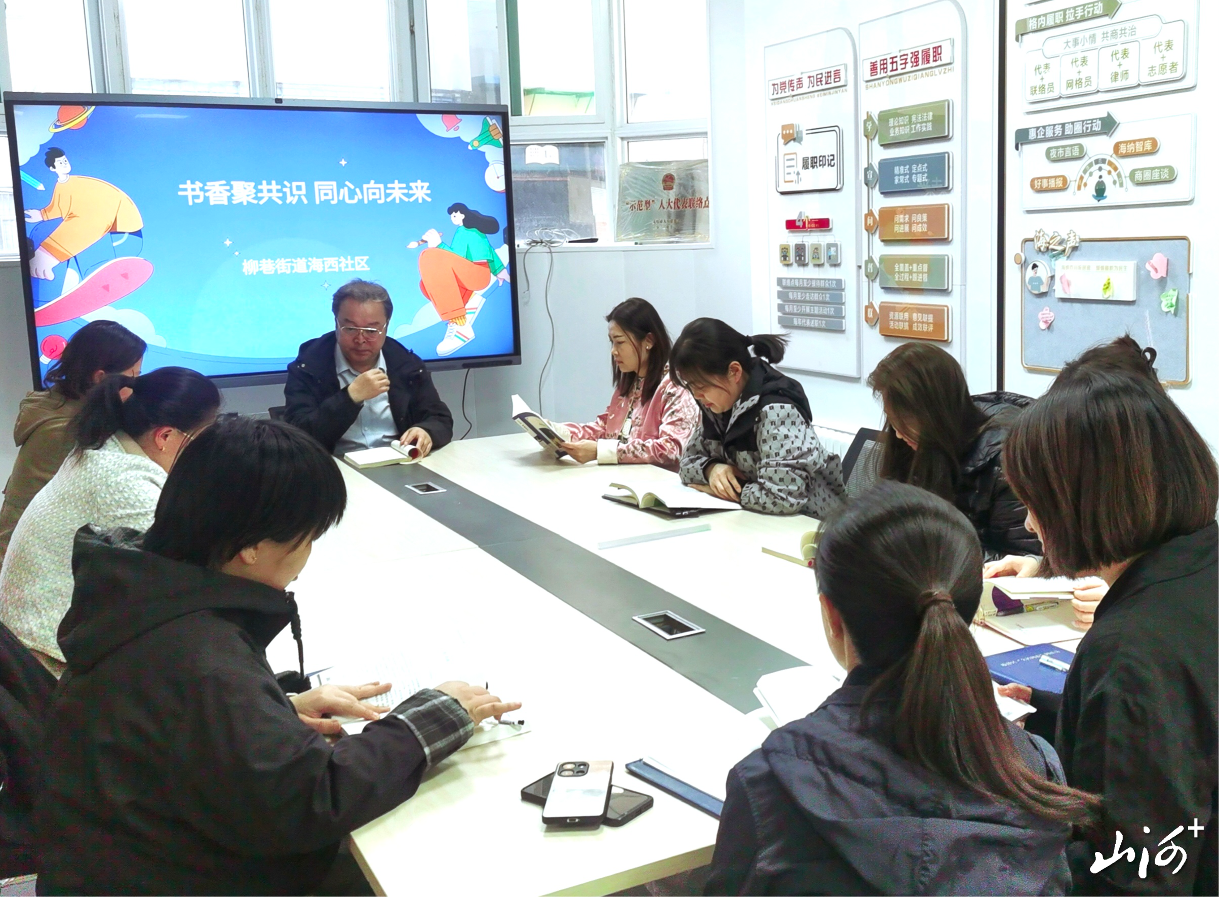 山西晚报·山河+讯 为进一步营造爱读书、读好书、善读书的浓厚氛围,以文化凝聚思想共识、汇聚履职合力,4月23日,太原市柳巷街道海西社区开展了“书香聚共识 同心向未来”主题读书分享活动。