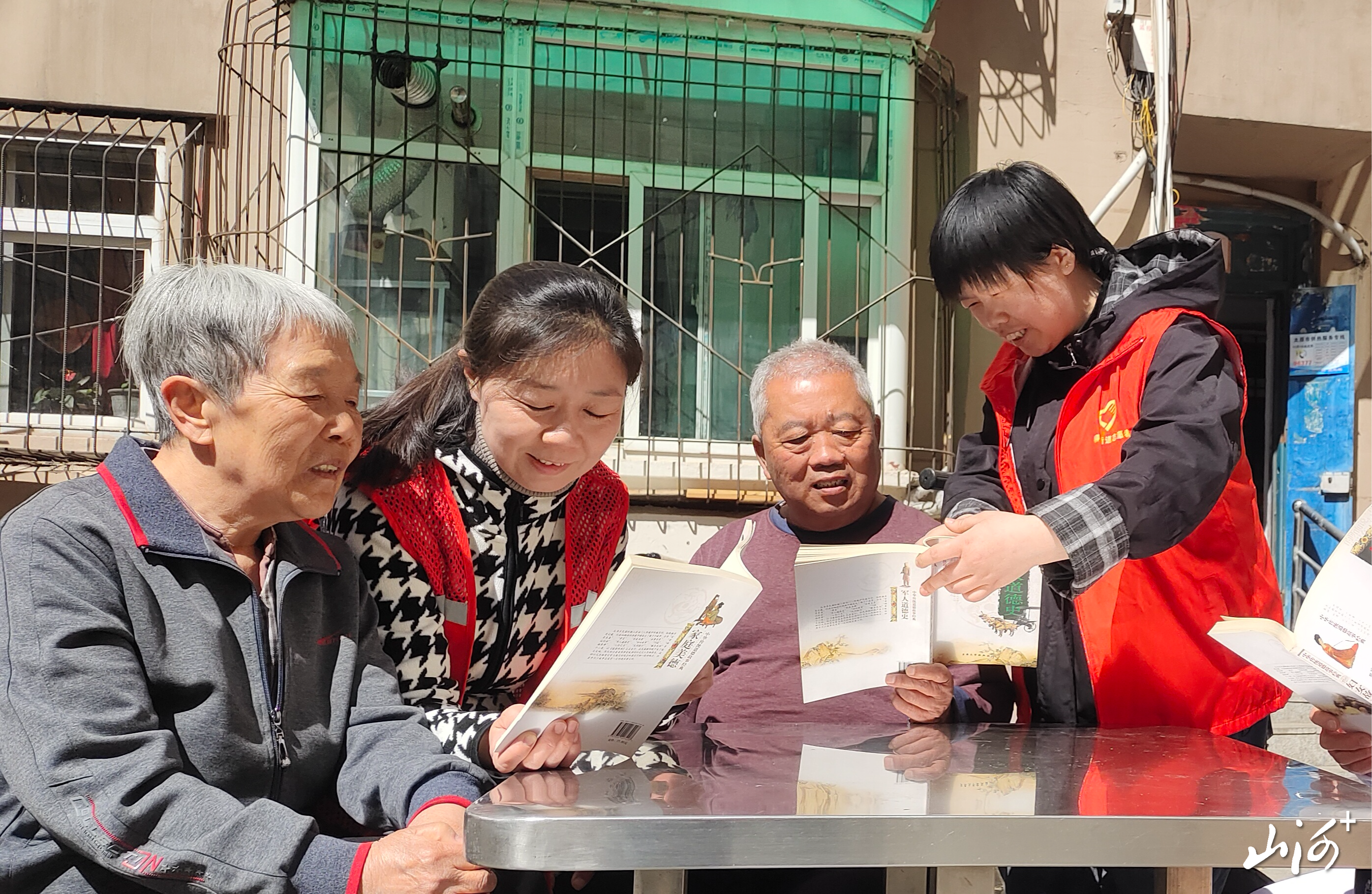 在居民共读分享环节,社区网格人员走进辖区院落,面向居民开展沉浸式读书。