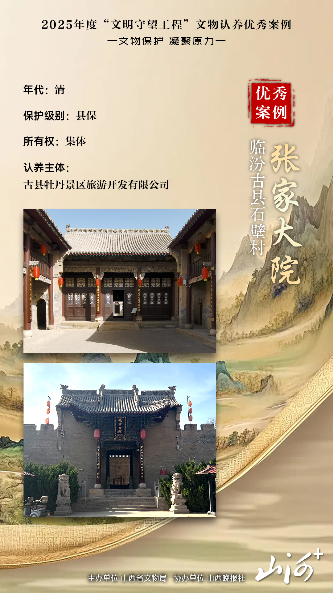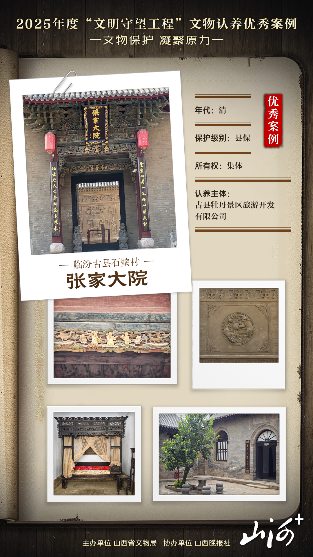 负责认养的古县牡丹景区旅游开发有限公司负责人刘波说:“参与文物认养不只是商业投资,更是传承文化的责任。”景区深挖历史,把各厅堂复原成“张家历史展示馆”“晋南民俗展示馆”,通过陈列文物、图片、文字资料,给游客讲张家的变迁、古县的民俗,“让大家能‘触摸’到往昔的生活”。