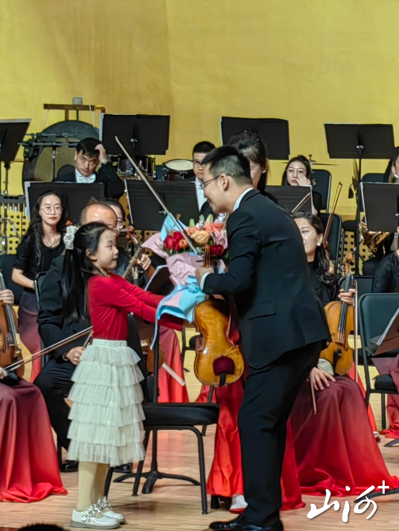 当晚,音乐厅内座无虚席。在音乐总监、首席指挥董俊杰的灵动执棒下,乐团以饱满状态悉数奏响传世经典。《红旗颂》开篇号角嘹亮,再现红旗升起的庄严时刻;《我爱你中国》经交响改编,深情厚重直抵人心;小约翰·施特劳斯《蝙蝠序曲》轻快优雅,尽显古典魅力;布鲁赫《g小调第一小提琴协奏曲》在高参的演绎下,音色纯美、技巧精湛,将小提琴的艺术张力发挥到极致;《加勒比海盗》主题曲气势恢宏,点燃全场热情。