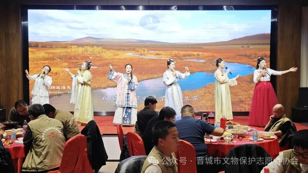 晋城市文旅局、泽州县文旅局、晋城市文物保护研究中心、晋城市民政局、晋城市三晋文化研究会等相关部门人士、文博领域专家学者、媒体记者及爱心企业家等34位嘉宾受邀出席,晋城市文物保护志愿者协会140余名会员与嘉宾代表齐聚一堂,共忆协会成长之路,共话文保事业新篇,同赏文艺视觉盛宴。