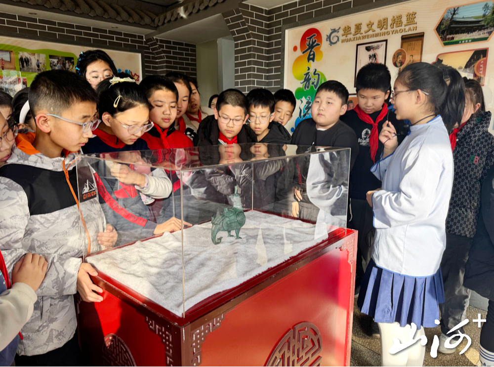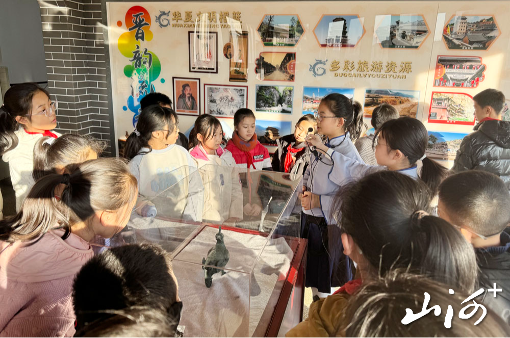 最受师生欢迎的当数晋韵流芳讲解员社团,小小讲解员们不仅围绕山西博物院捐赠的仿制品铜牺立人擎盘、鸟尊娓娓道来,还化身傅山文化传播者,为大家细致讲解今年新增设的傅山中医药文化角里的传奇故事、著作成就、与八珍汤的渊源及傅山拳法的由来,生动地解说带领大家沉浸式领略传统文化的深厚底蕴。