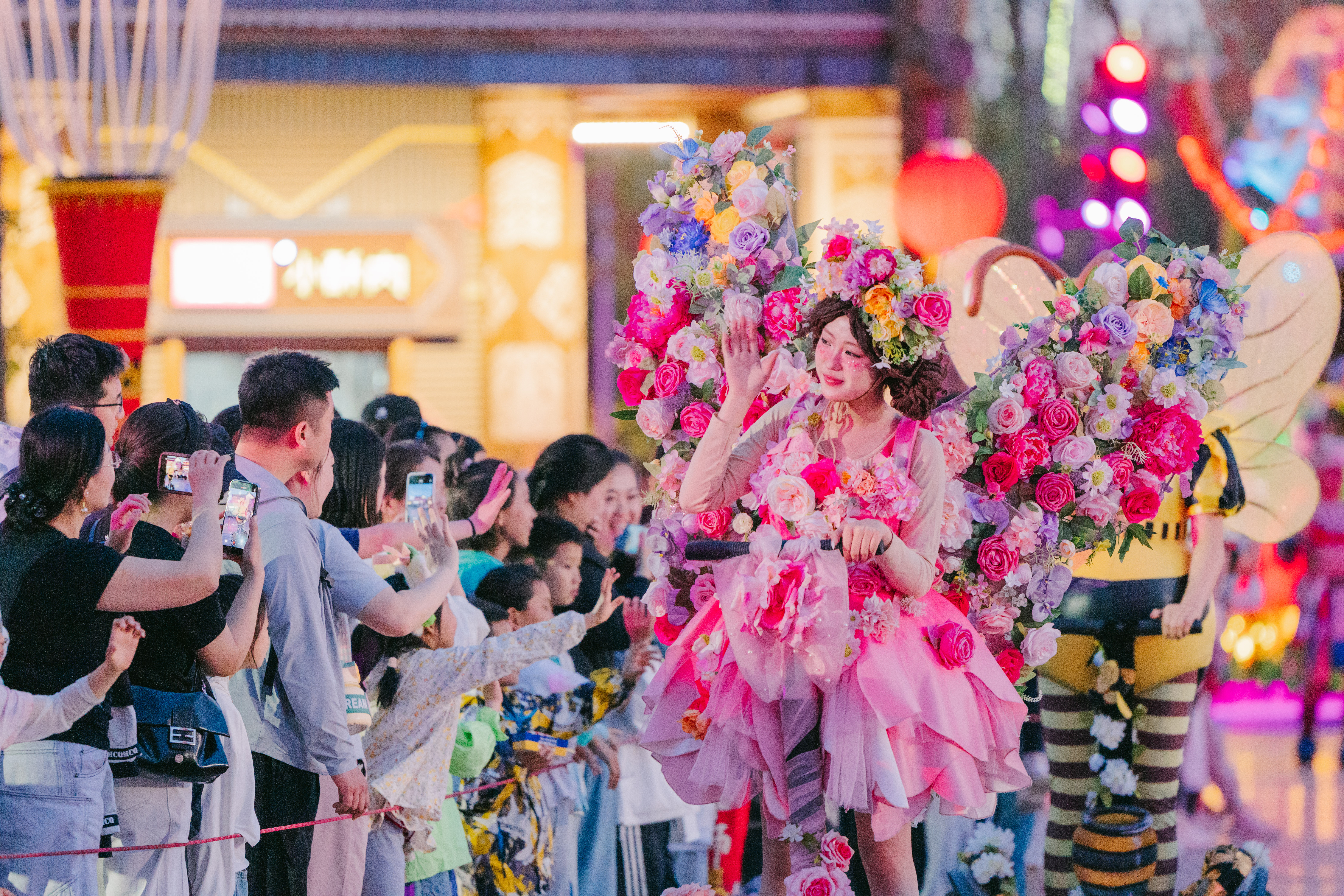 白天,必看核心演艺《锦绣华章》震撼登场,由央视专业演艺团队匠心打造,联手知名设计师精心创作,以“锦绣织梦,华章启福”为核心,带你感受中华传统文化的极致魅力。演出现场,锦绣神女、祈福树仙、祥瑞醒狮等角色轮番登场,既有庄重有仪式感的全民祈福互动,又有唯美大气、寓意吉祥的歌舞表演,一招一式尽显文化底蕴,一景一幕传递美好祝福,堪称五一游园不可错过的视觉与文化盛宴。