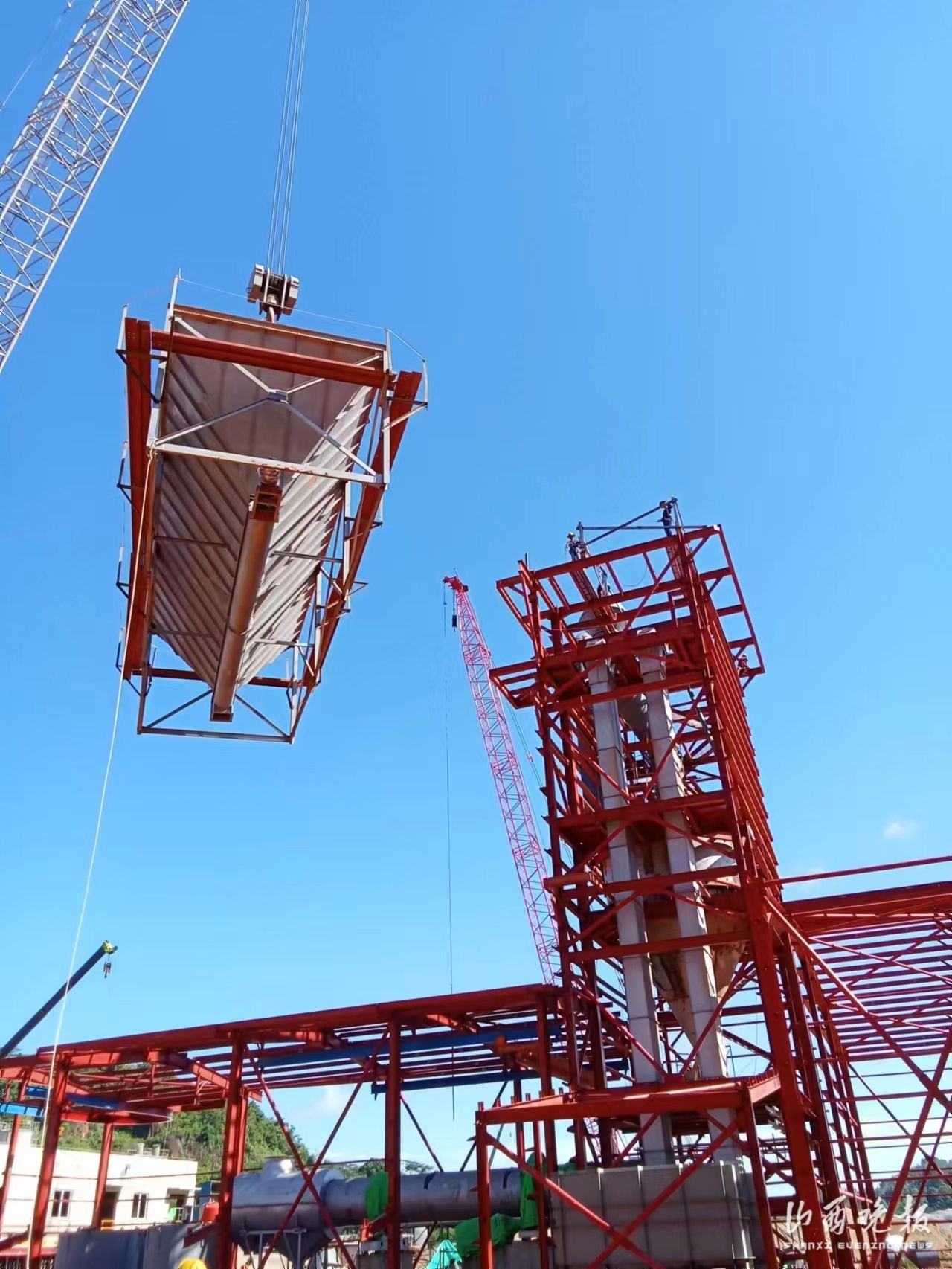 十二冶承建的中伟印尼中青项目除尘设备吊装施工。
