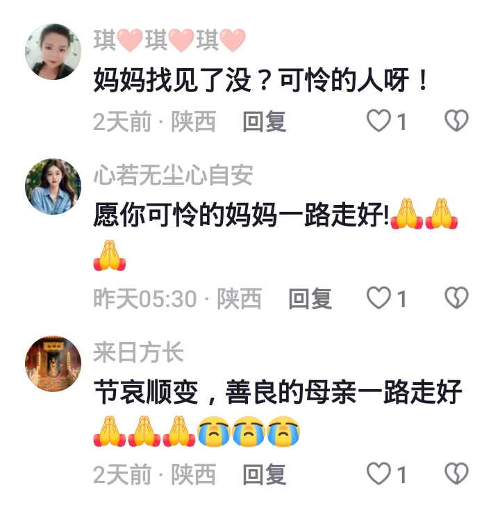 旬邑县清塬镇山体坍塌致农妇失联事件,曾引起社会关注。李某某子女在个人社交媒体账号发布讣告后,很多关注此事的网友纷纷留言表达哀悼之情。令人遗憾的是,山西晚报·山河+记者从李某某儿子崔先生处获悉,目前“搜救队走了,(遗体)没有找到”。