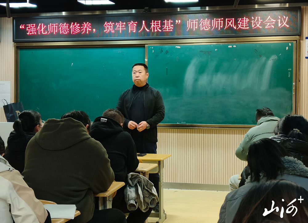 山西晚报·山河+讯 为深入贯彻落实立德树人根本任务,进一步淬炼师魂、规范师行,筑牢教师思想道德根基,引导全体教职工自觉践行教育使命, 11月27日,太原市马庄小学以“强化师德培养 筑牢育人根基”为主题召开师德师风专项会议,全体教职工齐聚二楼录播室,以严肃认真的态度接受思想洗礼、凝聚育人共识,共赴一场有温度、有深度、有力度的师德师风教育之约,为教育事业的前行注入温暖而坚实的力量。