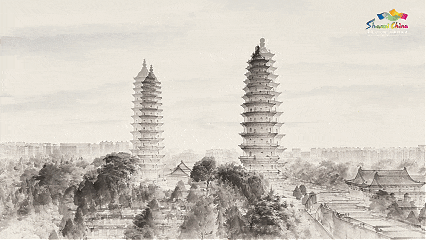 太原永祚寺的双塔并立,以砖石为骨,层层飞檐向上舒展,直抵苍穹。水墨晕染间,古塔与背后的龙城天际线相融,既藏着太原千年的城建史,又透着“双塔凌霄”的独特盛景,是三晋首府最具辨识度的古建符号。