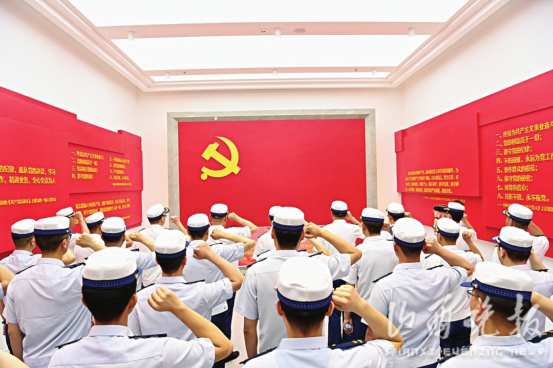 省消防救援总队党员重温入党誓词,永葆共产党员初心本色。