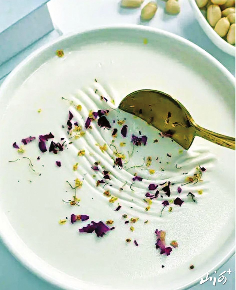 做法:将100克花生、40克糯米、冰糖适量加600毫升水放入破壁机,搅打至细腻,倒出后撒上玫瑰花瓣和桂花即可。这款花生糯米饮香气淡雅、口感绵滑,秋冬早晨来一杯,让人暖胃又开心。