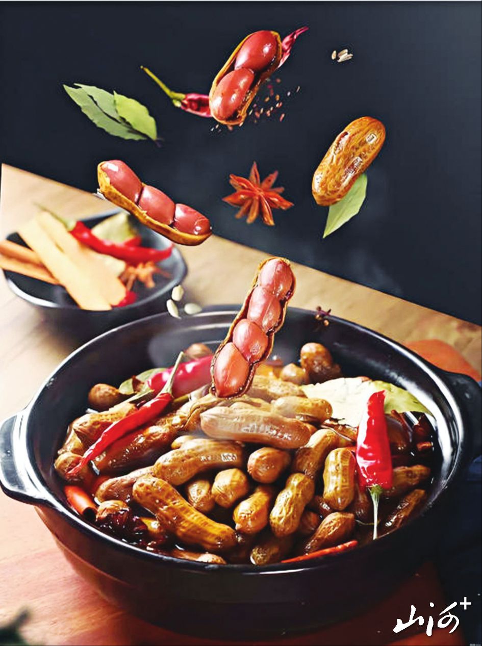 做法:将花生清洗干净,挤开一个小口,方便入味,放入锅内,加八角、香叶、干辣椒、桂皮、花椒、冰糖、食盐、生抽、鸡精、水适量,大火煮开转小火煮40分钟。关火后泡3小时入味,捞出装盘即可。
