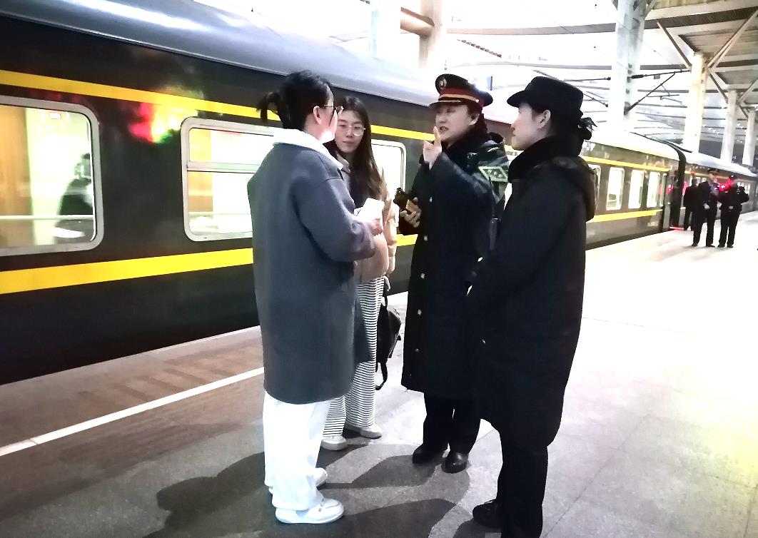 列车长杨凤娇回答旅客咨询。王蓉摄