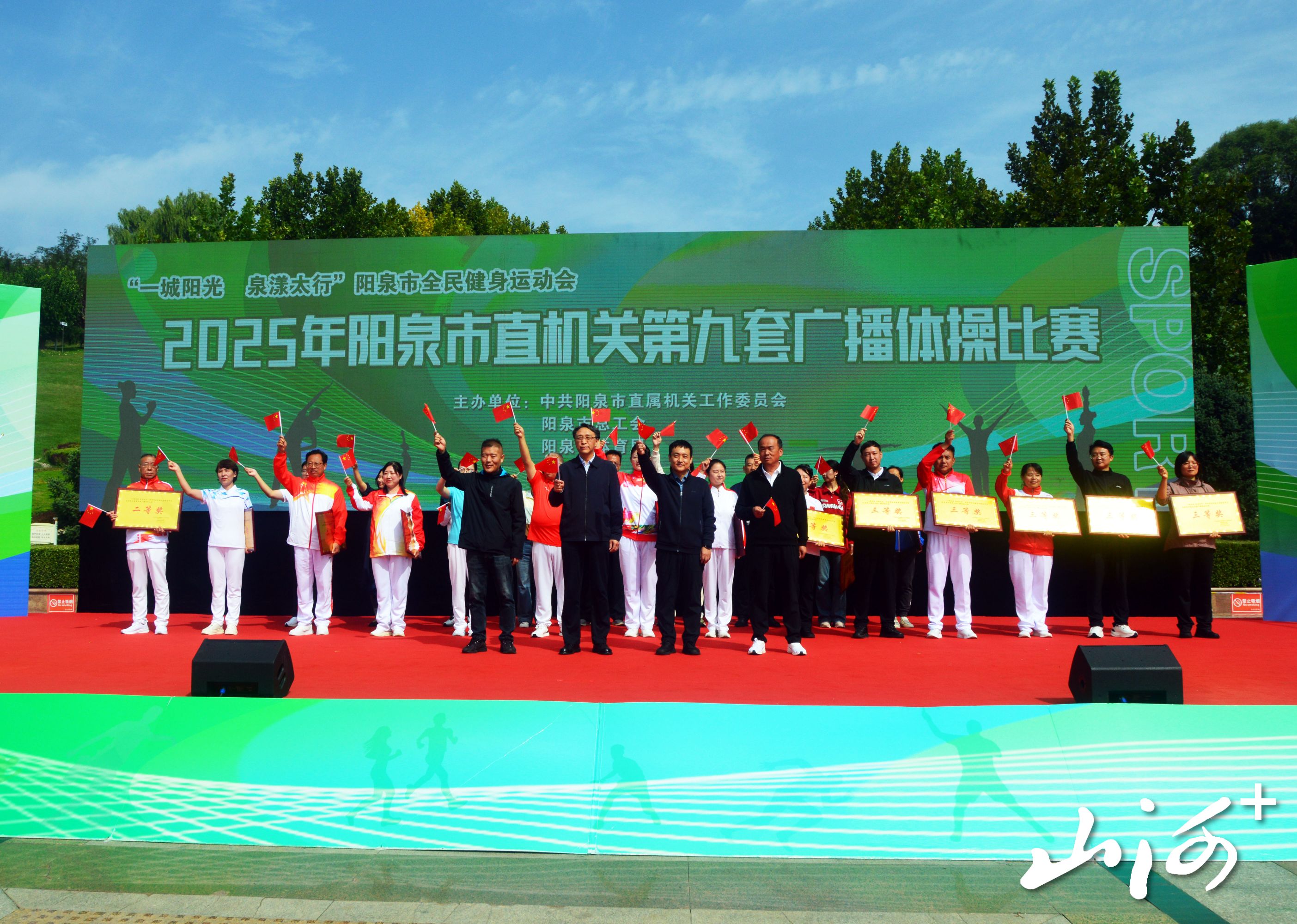 山西晚报·山河+讯 为庆祝中华人民共和国成立76周年,丰富职工业余文化生活,展示机关广大干部职工昂扬奋进的新时代风采,9月28日,由阳泉市直属机关工作委员会、阳泉市总工会、阳泉市体育局共同主办的“一城阳光 泉漾太行”阳泉市全民健身运动会市直机关第四届第九套广播体操比赛正式举行。