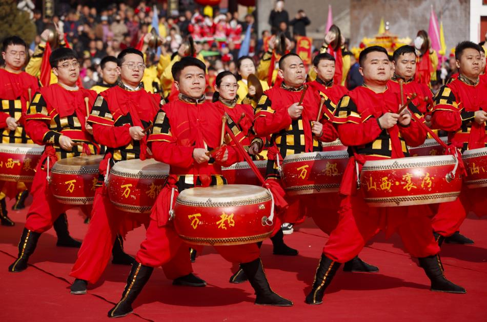 “咚咚锵!咚咚锵!”在襄汾县陶寺“二月二龙抬头节”民俗活动现场,身着红黑传统服饰的锣鼓队员跨开马步、挥动双臂,铿锵有力的锣鼓声响彻云霄。围观的游客纷纷拿出手机拍摄,掌声与喝彩声此起彼伏。