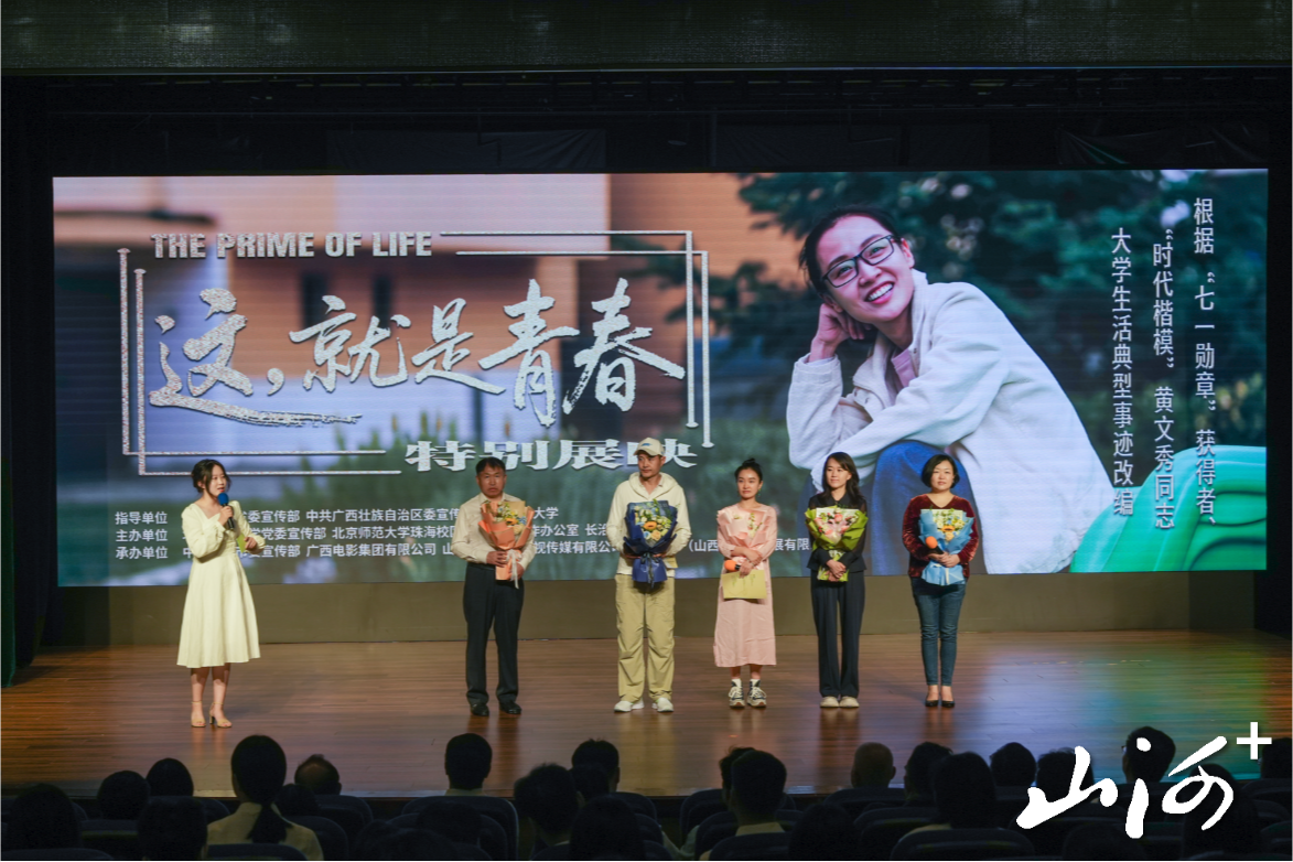 展映现场,山西省委宣传部副部长、省电影局局长张效堂,长治学院党委书记曹景川,北京师范大学党委副书记、珠海校区党委书记韦蔚,广西壮族自治区委宣传部电影处、广西壮族自治区百色市委宣传部、广西电影集团有限公司等单位相关负责人,黄文秀家属代表以及专家学者、影片主创和在校师生共同观影。