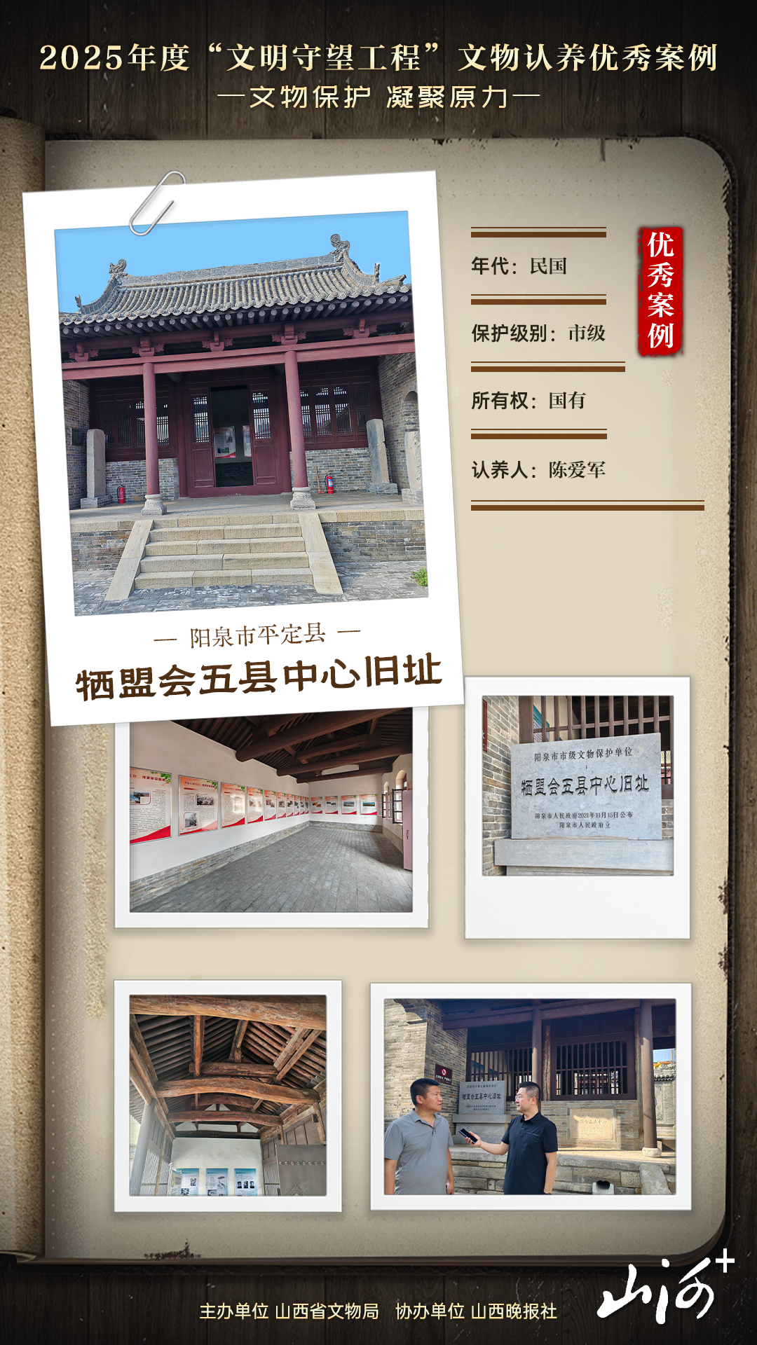 平定县牺盟会五县中心旧址,是抗日战争时期晋东地区抗日救亡运动的“红色枢纽”。曾几何时,它因年久失修沦为“大杂院”;如今,在“文明守望工程”的滋养下,在认养人陈爱军的守护中,它重焕生机,成为薪火相传抗战精神的“实景课堂”。