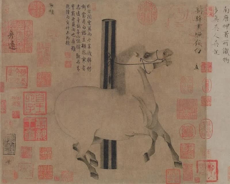 在古代,乡绅大户常见的代步工具是马。为此,人们也要给马准备个“停靠”的位子,于是就产生了拴马桩,即今天“车位”原型。据说,拴马桩最早出现在秦汉时期,以木桩的形态出现。在唐代画家韩干的《照夜白图》中,描绘唐玄宗坐骑被拴于木桩上的瞬间,马匹鬃毛飞扬、昂首嘶鸣。明清时期,拴马桩多为石制,采用灰青石、黑青石,常与大门前的马石配套使用,形成了民间住宅大门前的重要组成部分,既有装点建筑的作用,也被赋予了避邪镇宅的意义。