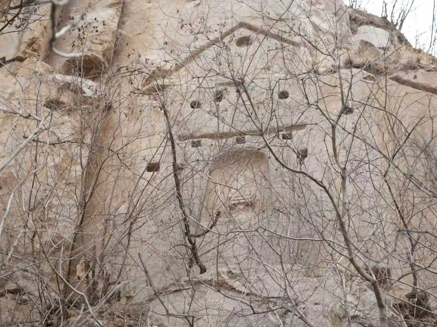 王家庄石刻位于平定县冠山镇王家庄村北小河岸边的山崖上,距河床约4米,摩崖造像为单龛单像式,龛为拱形。龛中雕凿一佛像,结跏趺坐于束腰须弥座上,着敞胸僧衣,背后雕有头光,面部及左肩部早年被人凿毁。在龛的左侧,凿一摩崖碑,圆首形,额楷书“归依佛”3字;碑文楷书,10行,行最多16字。碑文内容漫漶不清,内容大致为:五渡村教民吴新及其母武氏看到此地“山连翠岭”,风光尤佳,于是在这“烟岚”之地削崖建殿,并“愿心建圣像兴焉”,祝“皇帝万岁”,“郡主千秋”,“风顺雨时”,“道泰合众”,“永为供养”云云。为宋熙宁四年(1071)。