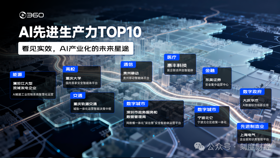 当大模型的浪潮逐渐沉淀,产业界正在核心关切一个命题:AI技术如何深度融入产业生产线,真正转化为可量化、可验证的生产力?近日,360甄选的“AI先进生产力TOP10”案例发布,覆盖高校、交通、金融、能源、政务等十大核心领域,全景呈现智能体驱动业务转型的实效,为千行百业提供了一份可借鉴、可落地的AI实战指南。
