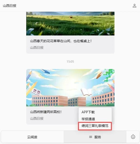 关注山西日报微信公众号,点击菜单栏“服务”—“德润三晋 礼敬模范”专区提供线索。