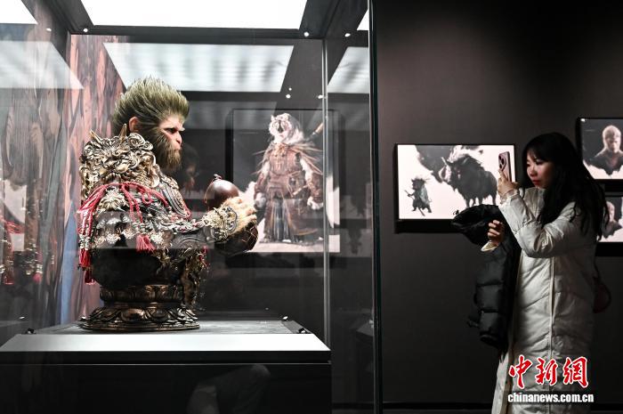 12月31日晚,民众在太原古县城参加“再见上下:黑神话·悟空遇见山西”新年音乐专场跨年活动,迎接即将到来的2026年。图为民众参观《黑神话·悟空》雕像。中新社记者 韦亮 摄