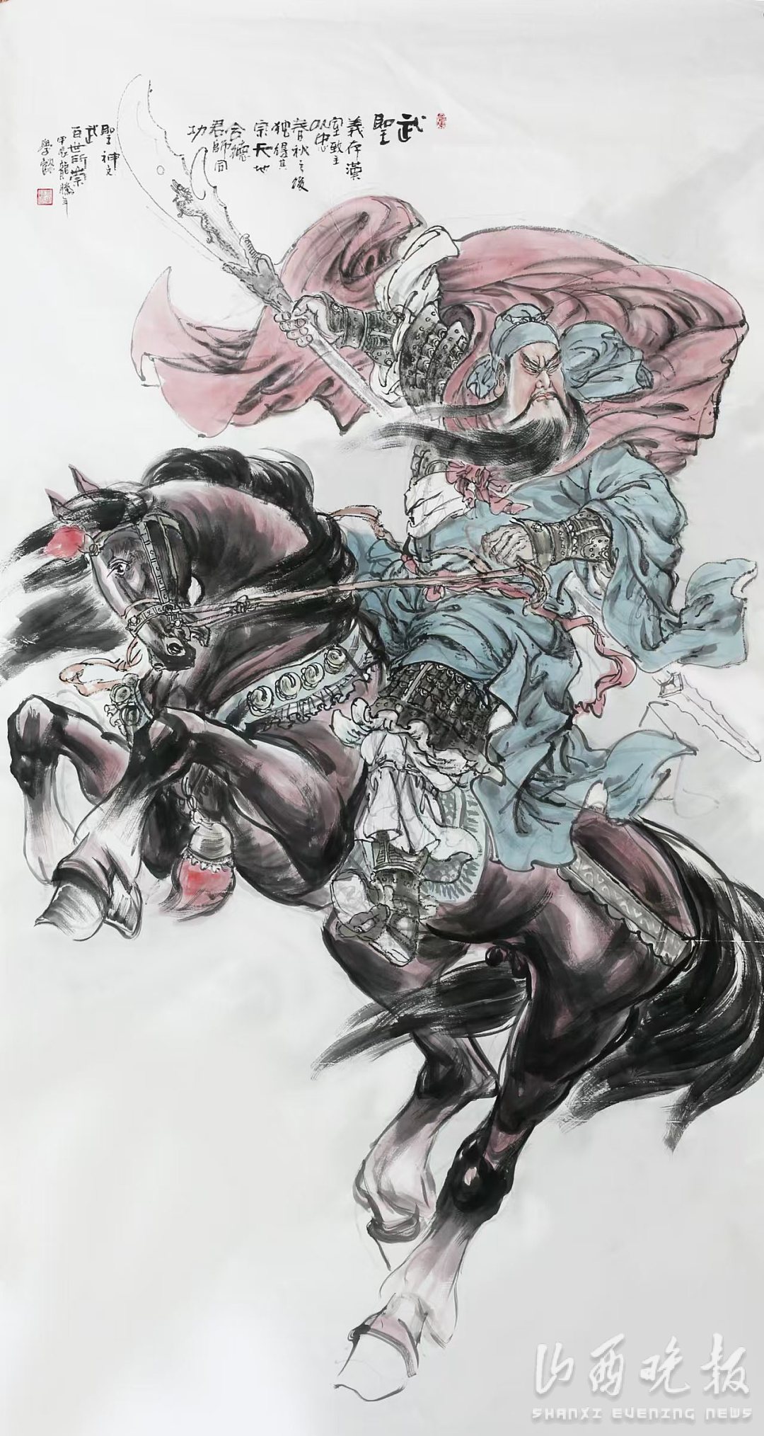 裴学懿,1952年出生,他生长于关公故里,对关公情有独钟。裴学懿先生的人物画创作,带有鲜明的时代烙印,朴拙的笔墨渲泄着对平凡生活的热爱。他所塑造的关公形象生动威武、神采飞扬,既有历史的厚重感,又具现代的审美风尚。画面气韵沉雄、墨彩律动的视觉张力,让读者有身临其境的穿越之感。
