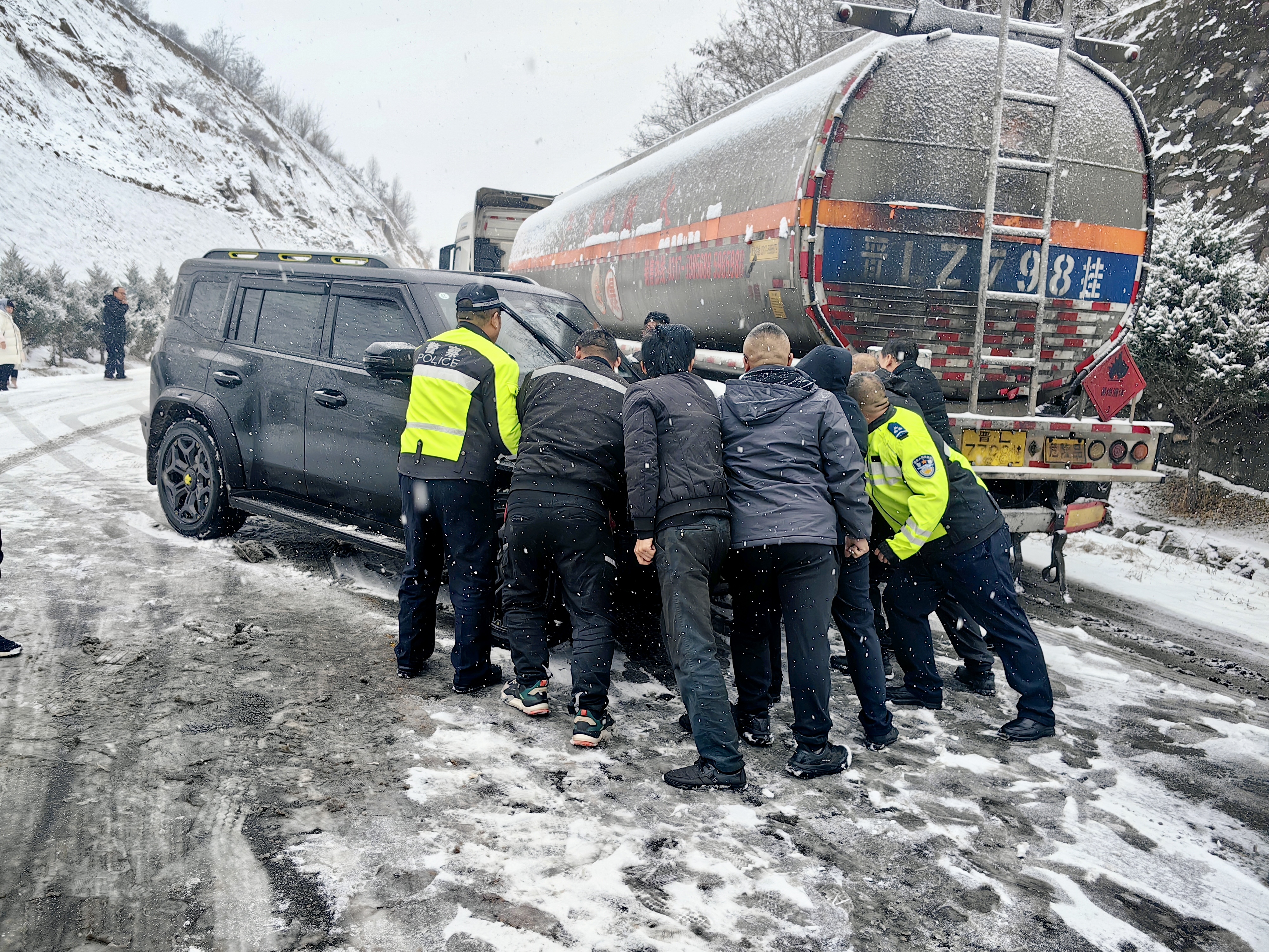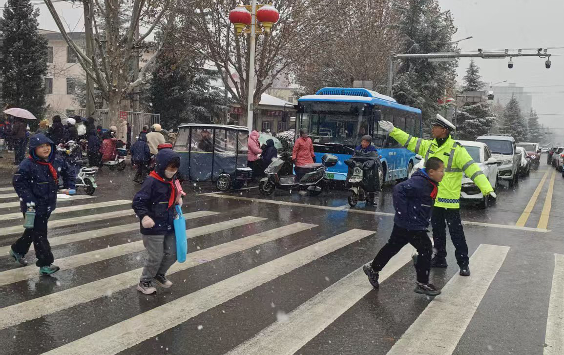 山西晚报·山河+讯 12月12日,临汾迎来降温降雪天气,道路交通安全风险陡增。全市公安民警以雪为令、迅速响应,在冰雪恶劣天气下,从道路冰雪清理、应急救援、交通指挥、护学到车辆安全协助等全链条服务,多样行动守护交通安全与群众安全出行。